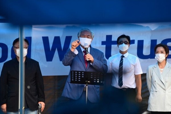 이어 "'우한 바이러스' 전체를 우리(교회)에게 뒤집어씌워서 사기극을 펼치려 했으나 국민의 현명한 판단 덕분에 실패한 것"이라며 "지난 1년 동안 '이승만광장'(광화문광장 서편)에 수천명이 모여 문재인 대통령에게 1948년 건국 부정과 낮은 단계의 연방제 등을 사과하라고 요구했습니다.