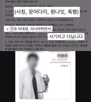 ‘의대생 신분을 사칭하는 한 남성이 수많은 여성들과 연애를 하고 있다’는 게시글 속 남성이 그녀의 남자친구, 박(가명) 씨와 너무도 흡사했기 때문입니다.