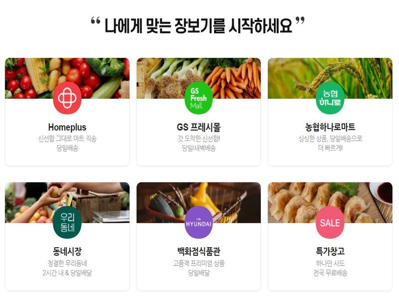 앞서 이마트, 롯데마트, 홈플러스 등 주요 대형마트들은 G마켓, 11번가, 티몬 등 주요 이커머스에 입점해 당일배송이 가능한 신선 상품을 판매하고 있습니다.